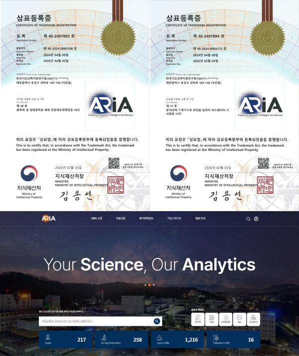 축 2026 KBSI 분석과학종합플랫폼 브랜드 ARIA상표등록완료