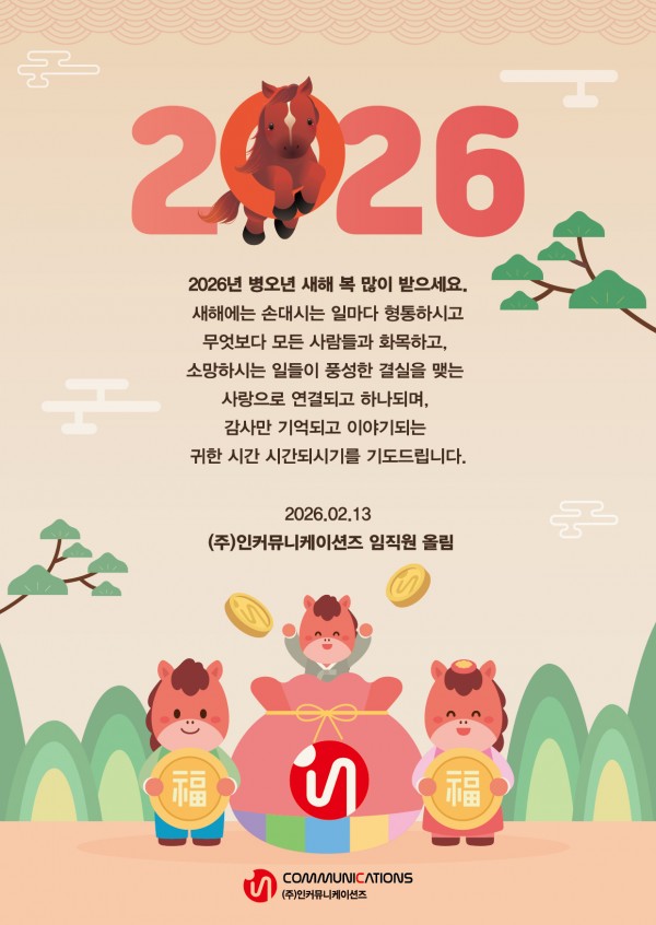 2026년 병오년 새해 복 많이 받으세요 페이지 정보 작성자 InComm 작성일26-02-12 13:04 조회180회 댓글0건 이전글 다음글 목록 본문 2026 병오년 새해 복 많이 받으세요. 이전글 다음글 목록